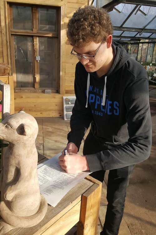 Seit dem 01.03., dem kalendarischen Frühlingsbeginn, ist Mick nun Arbeitnehmer im Betrieb und weiterhin geschätzter Kollege, „Anpacker und Schaffer“ in dem kleinen Team der Familiengärtnerei.
