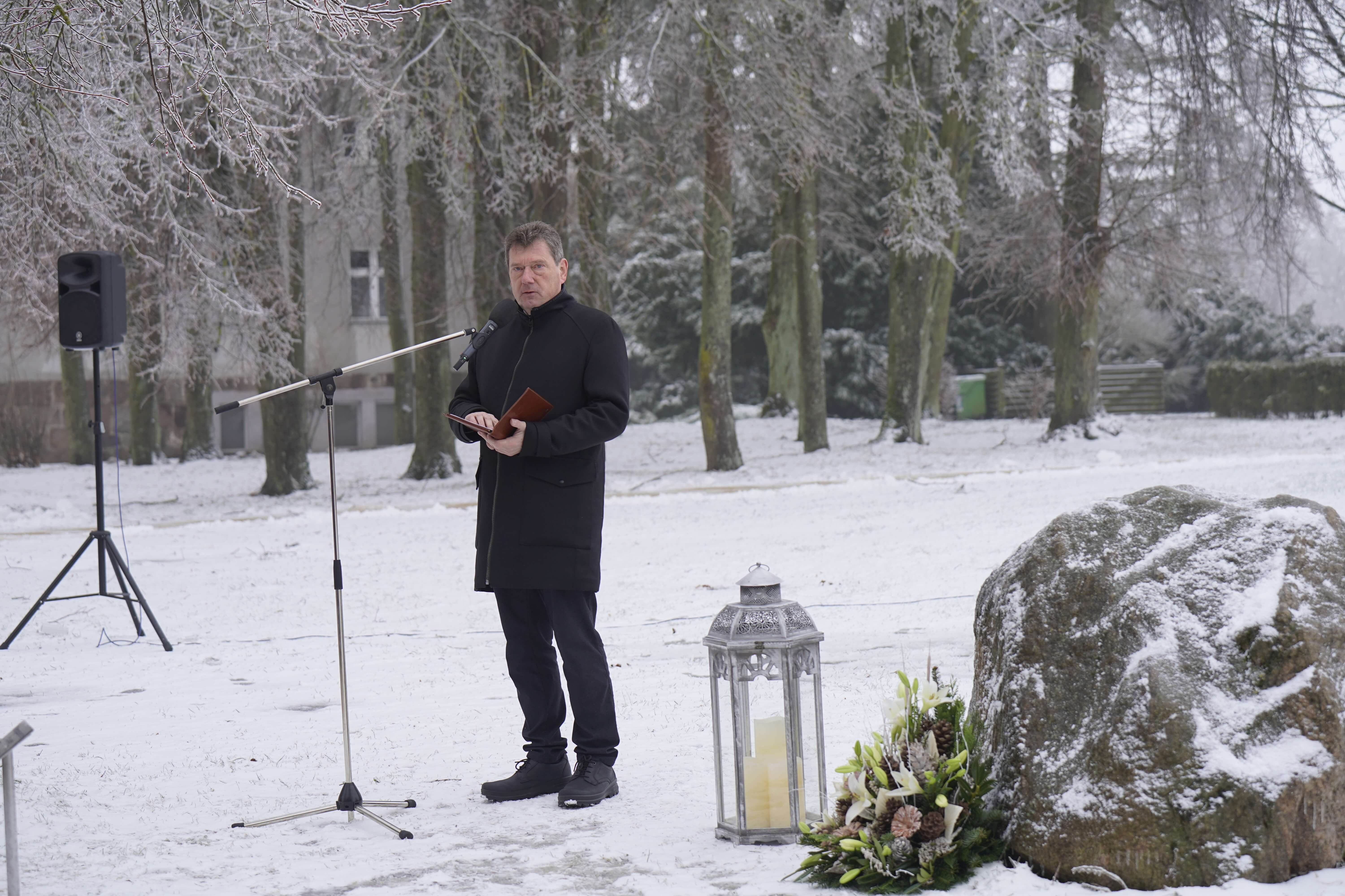 Anlässlich des heutigen Gedenktages der Opfer des Nationalsozialismus lud die Unternehmensgruppe Pommersche Diakonie zusammen mit der Kirchgemeinde Züssow-Zarnekow-Ranzin zur Gedenkstunde an das Mahnmal ein.
