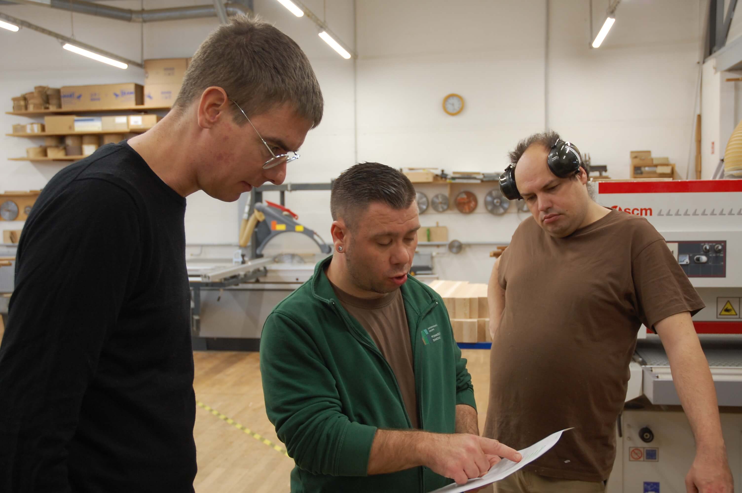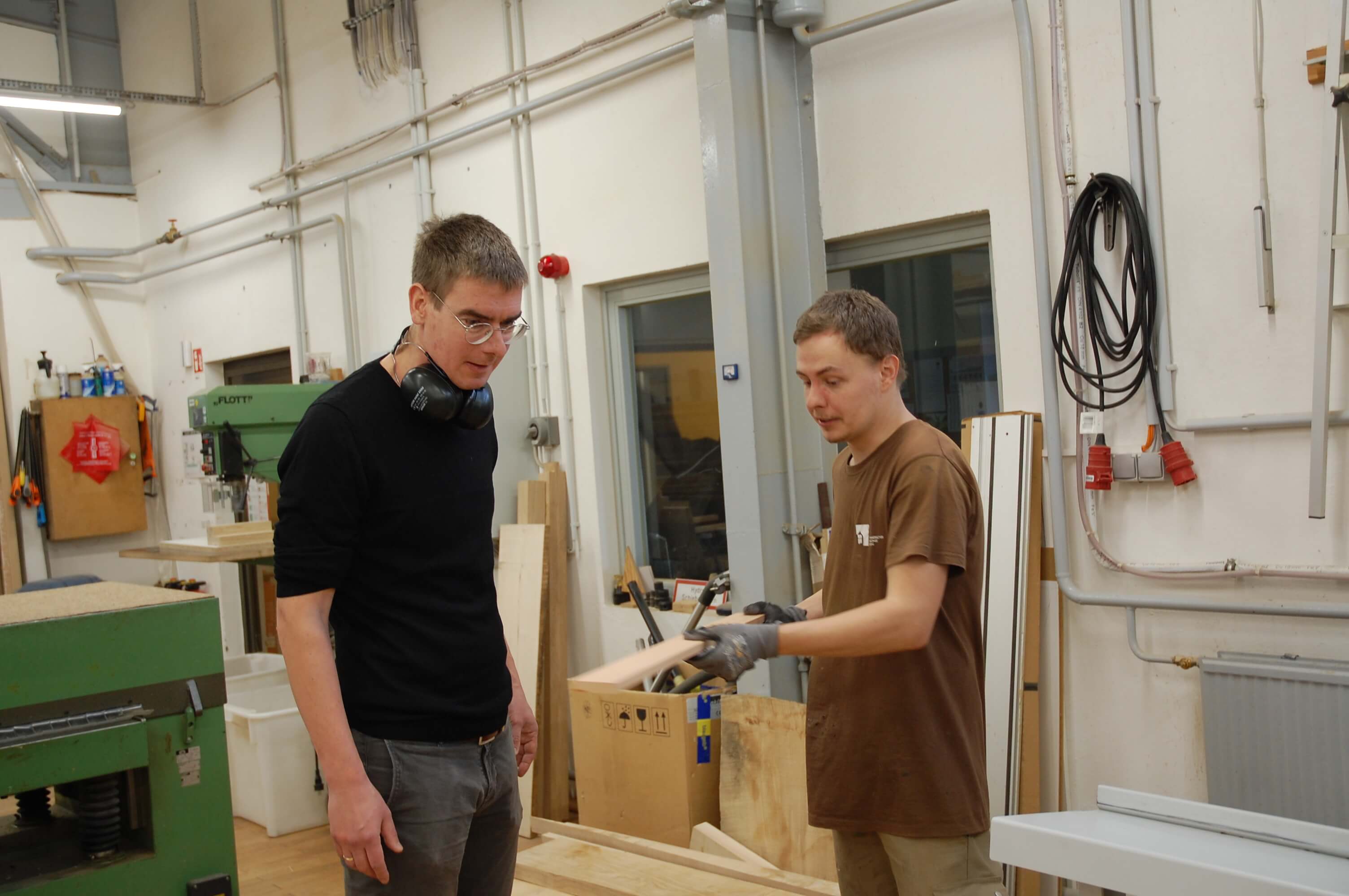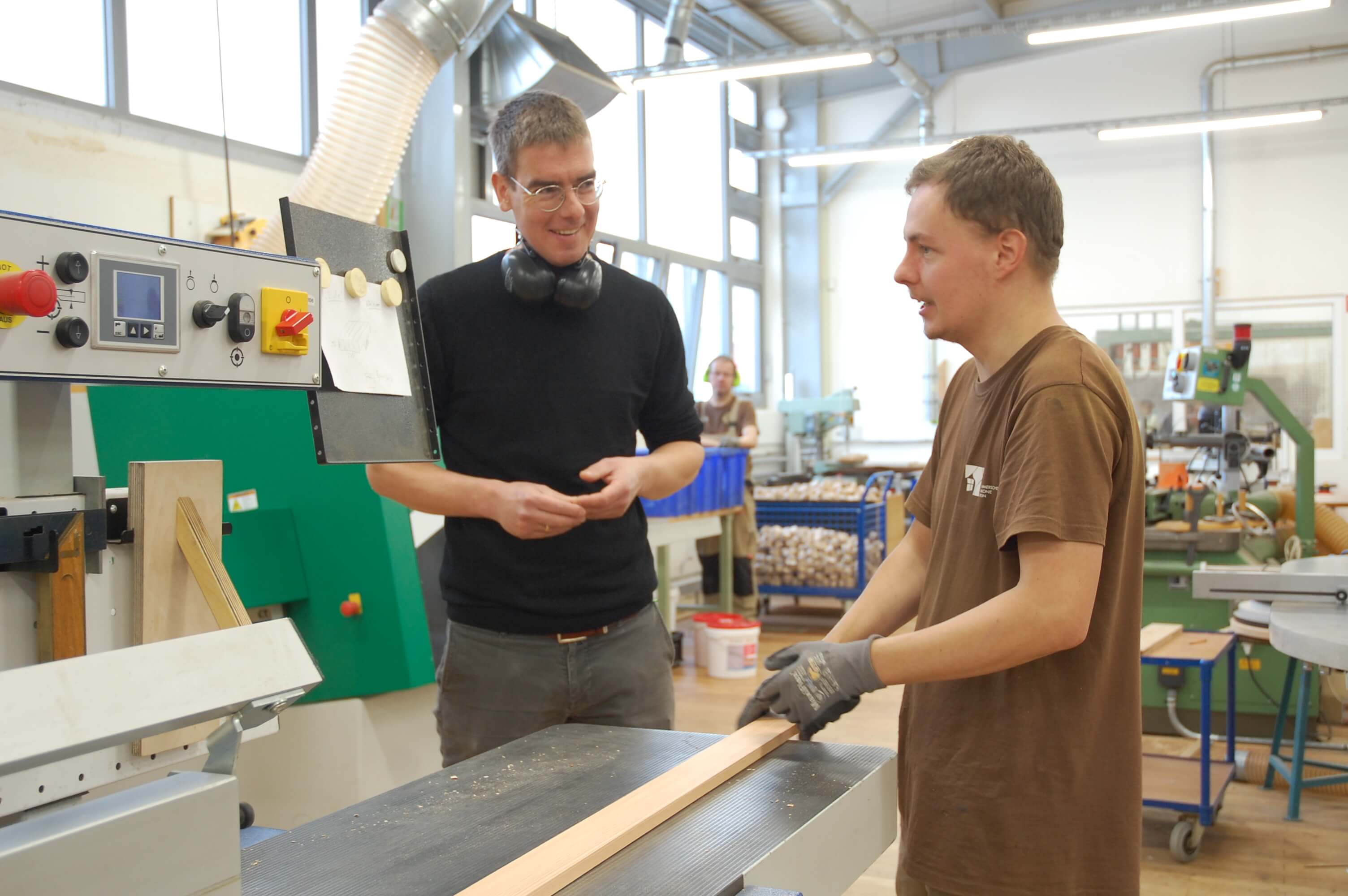 Benny Bernhardt, der Beauftragte für Menschen mit Behinderung der Stadt Greifswald, war eingeladen, einen Tag lang die Arbeit in der Tischlerei der Greifenwerkstatt kennenzulernen, mitzuarbeiten und mit den Menschen in der Werkstatt in Kontakt zu kommen. Um 09:30 Uhr wurde er herzlich in der Werkstatt begrüßt, dem Team vorgestellt und erhielt eine ausführliche Einführung in die Abläufe, die verschiedenen Arbeitsstationen und die Besonderheiten der Tischlerei. Schon kurz darauf konnte er selbst mit anpacken und gemeinsam mit den Mitarbeitenden in der Verpackung der Produkte mitwirken. Dabei entstanden viele Gespräche über die tägliche Arbeit, persönliche Erfahrungen und die Bedeutung der Werkstatt für die Beschäftigten.