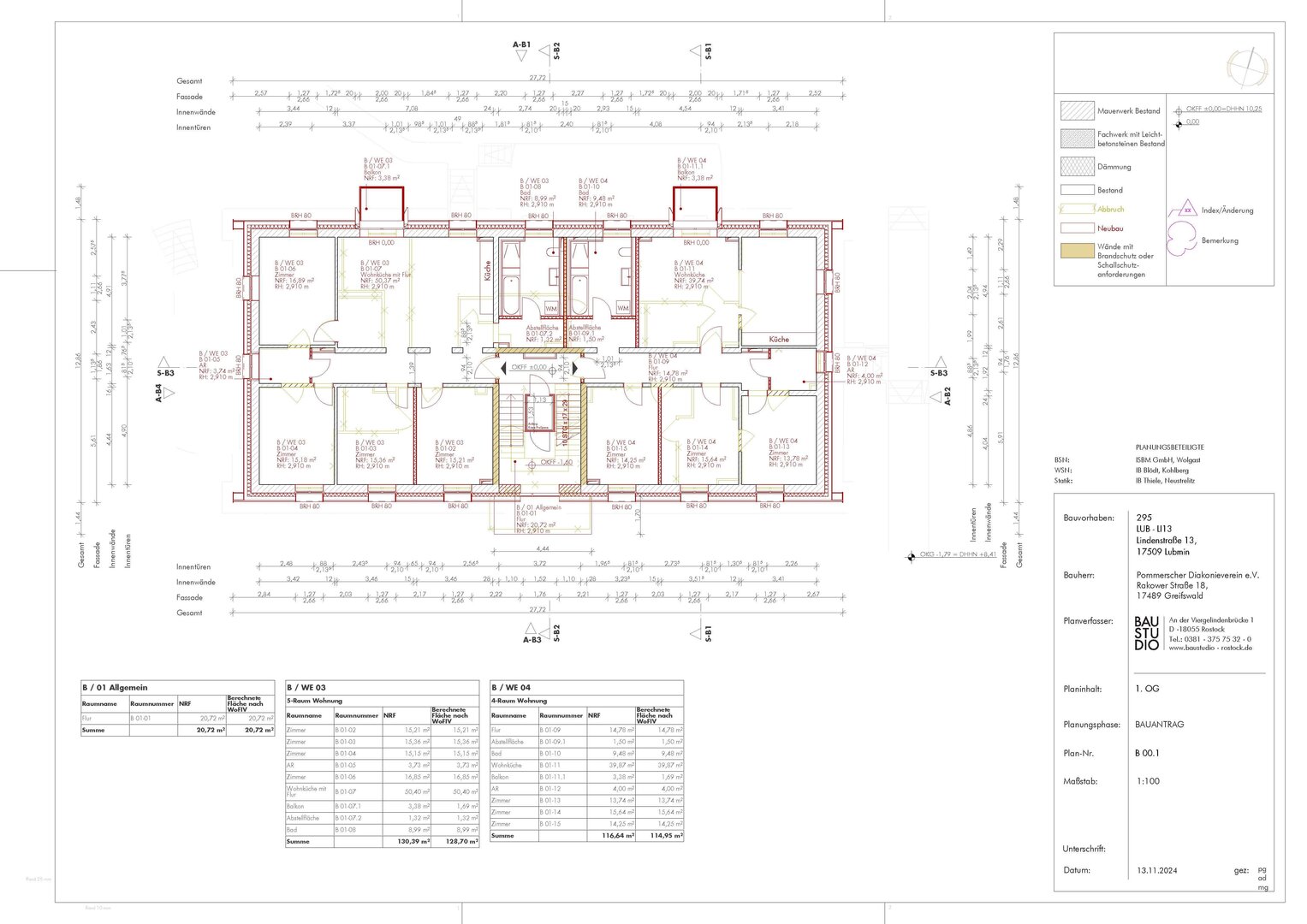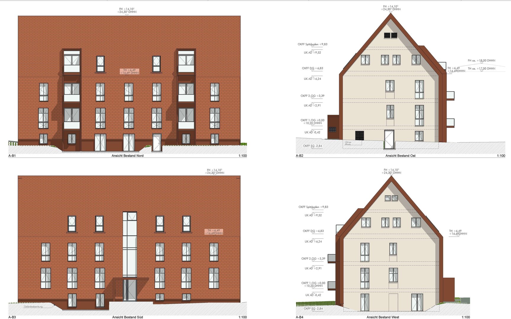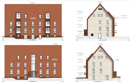Im sanierten Bestandsgebäude entstehen insgesamt acht Wohneinheiten, von denen sechs barrierearm und zwei barrierefrei ausgeführt sind.