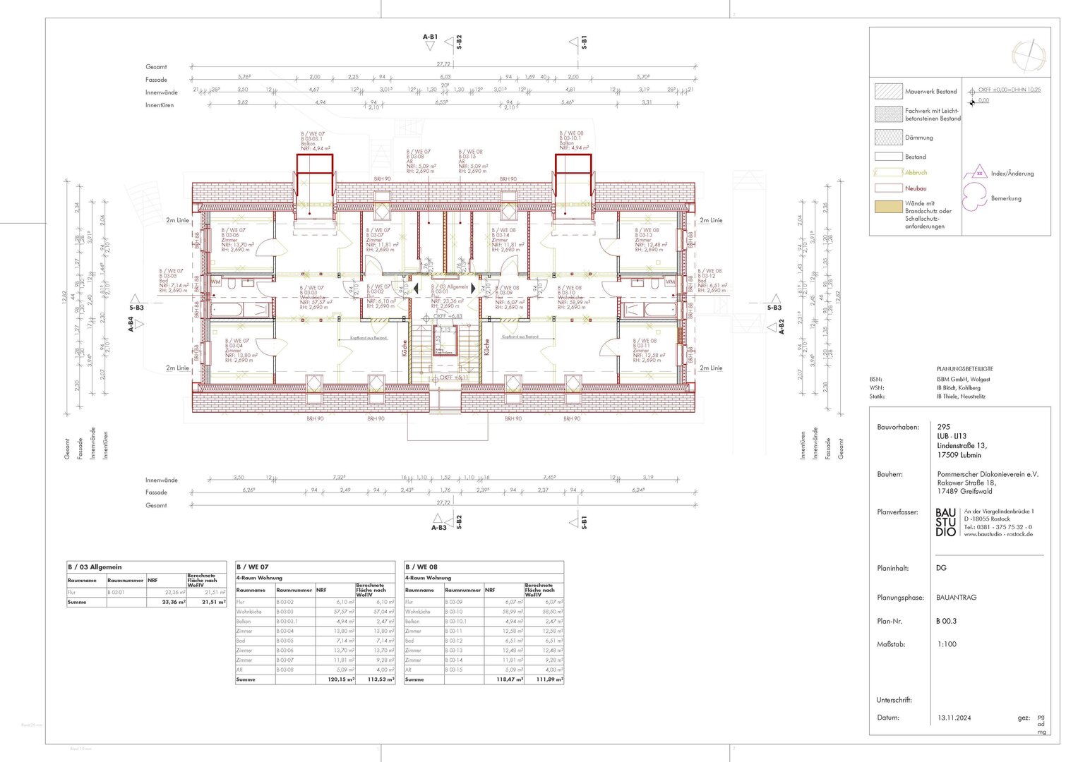 Geplant sind Umbau, Sanierung und Umnutzung des ehemaligen Pflegeheimes „Haus Meeresblick“ zu einem Wohngebäude. Das Bestandsgebäude befindet sich in unmittelbarer Lage an der Ostseeküste und bietet einen direkten Blick auf den Lubminer Strand sowie den Greifswalder Bodden. Ergänzend zum Bestandsbau wird auf dem Grundstück ein weiteres Wohnhaus errichtet, das das bestehende Gebäudeensemble erweitert.