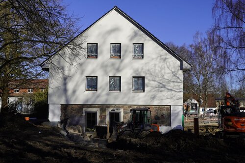 Das Erdgeschoss ist nun fertig gestellt. Hier zieht in den kommenden Wochen eine Tagesgruppe des Geschäftsbereichs arbeiten des Pommerschen Diakonievereins ein. Die Mietwohnungen im 1. OG sollen voraussichtlich im März 2026 fertig gestellt sein.