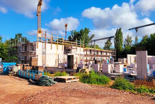 Der Pommersche Diakonieverein e.V. baut zwischen der „grünen Meile“ Pappelallee und dem Puschkinring in Greifswald ein modernes Seniorenzentrum. Direkt an den Stadtpark anschließend werden hier, ab März 2026, 103 Pflegebedürftige betreut.